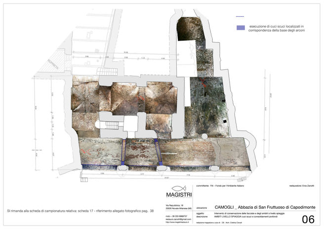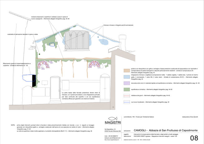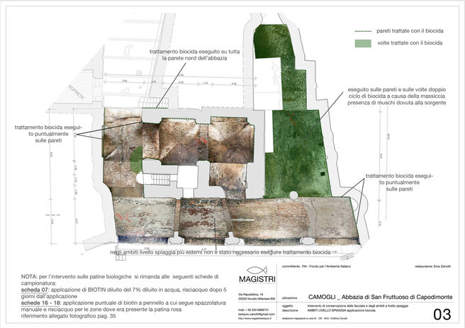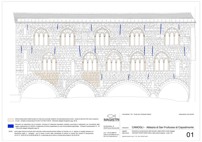 L’intervento ha mirato a preservare la patina formatasi nel tempo sulla superficie lapidea, che ha conferito una calda sfumatura dorata ai conci originariamente grigi. Si è scelto inoltre di conservare le diverse tipologie di malta impiegate nel corso degli anni per risarcire giunti e intonaci, rispettando le tracce storiche di precedenti restauri.