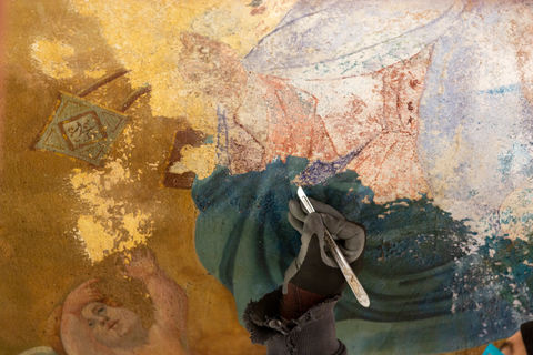 Ristabilimento della coesione mediante impregnazione con pennelli, siringhe e pipette.